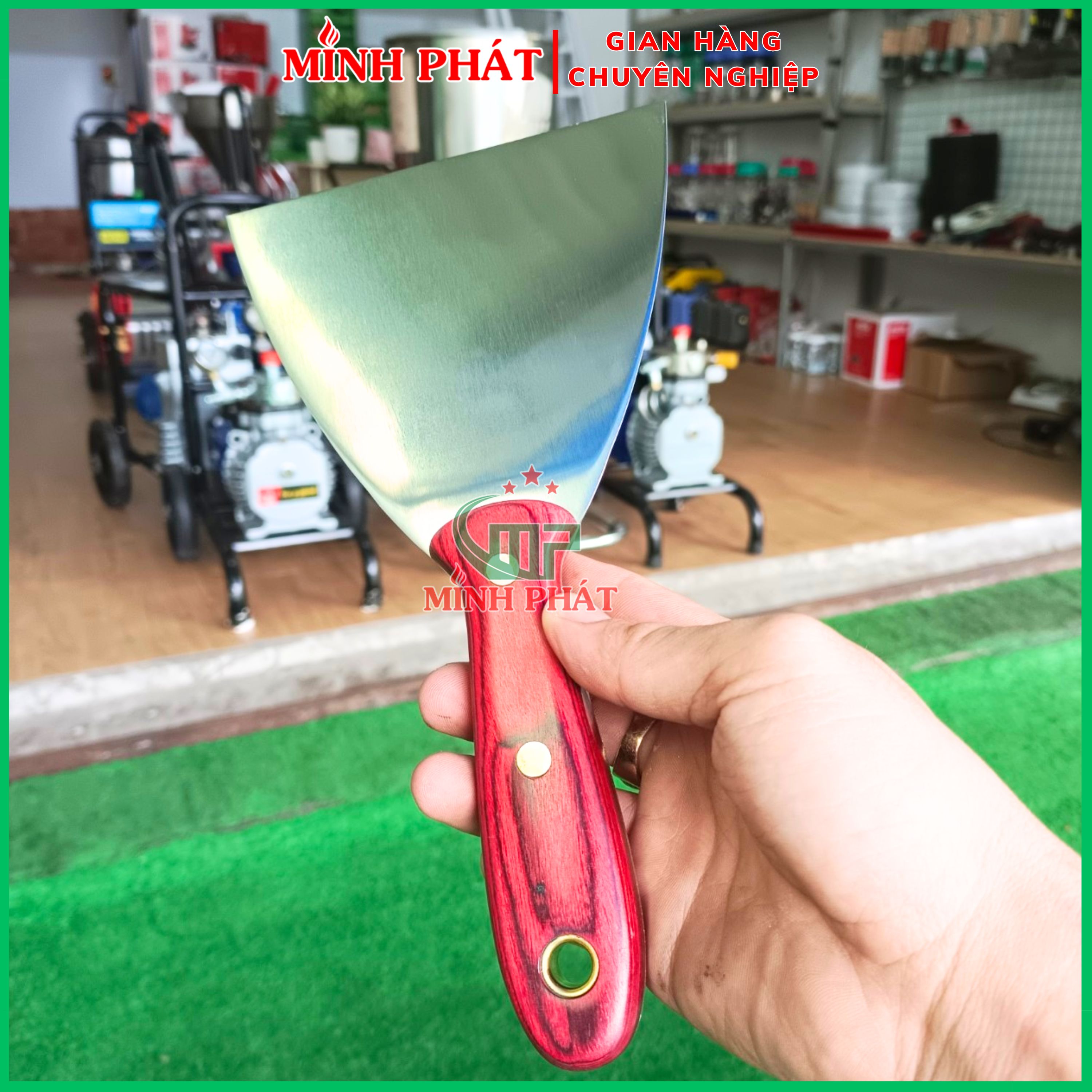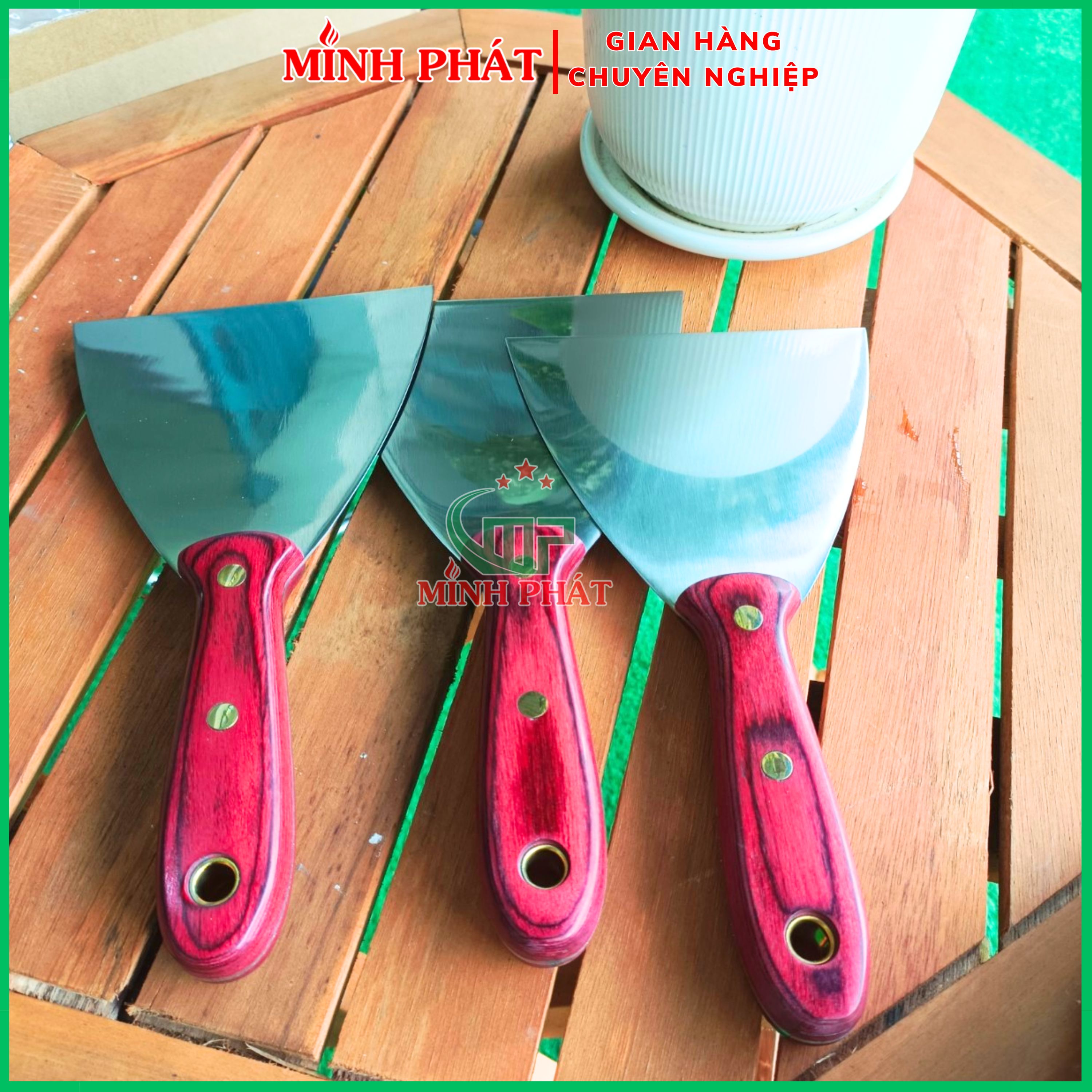 Cây xủi bột trét 12.5cm Minh Phát với lưỡi inox 201 đàn hồi cao + cán gỗ nguyên khối, là lựa chọn lý tưởng cho mọi công đoạn thi công bột trét và sửa lỗi bề mặt tường.